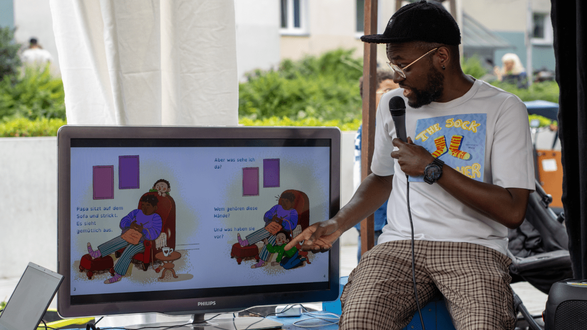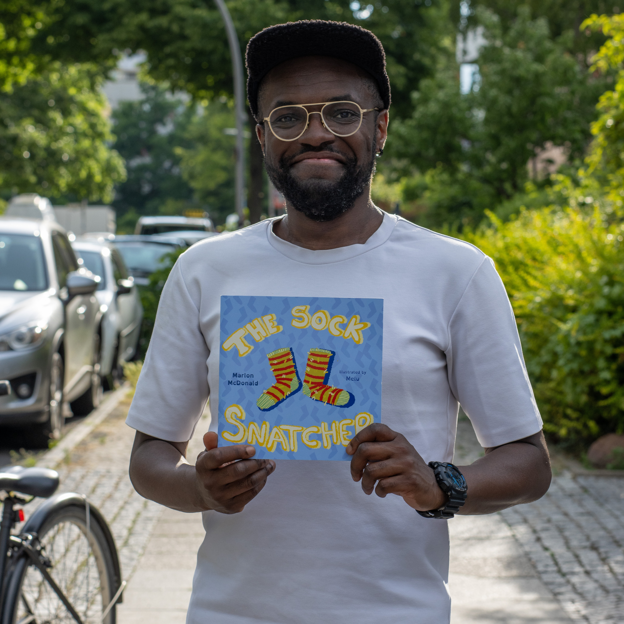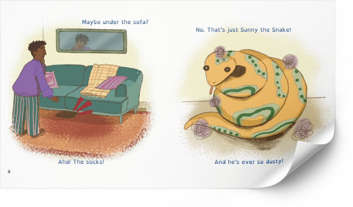 Ein frecher Sockensammler hat sie sich geschnappt. Papa sucht überall: unter dem Sofa, in der Küche, im Bad, sogar hinter der Pflanze. Dabei begegnet er lustigen Tieren mit noch lustigeren Ideen. Doch wo steckt der kleine Dieb?