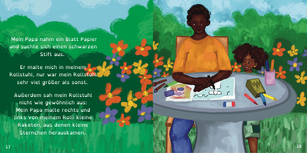 Eine berührende Bilderbuchgeschichte über die Kraft der Liebe, Fantasie und Freundschaft. Die kleine Erzählerin wird mit einer körperlichen Beeinträchtigung geboren und findet durch die Unterstützung ihres einfühlsamen Papas Mut und Selbstvertrauen.