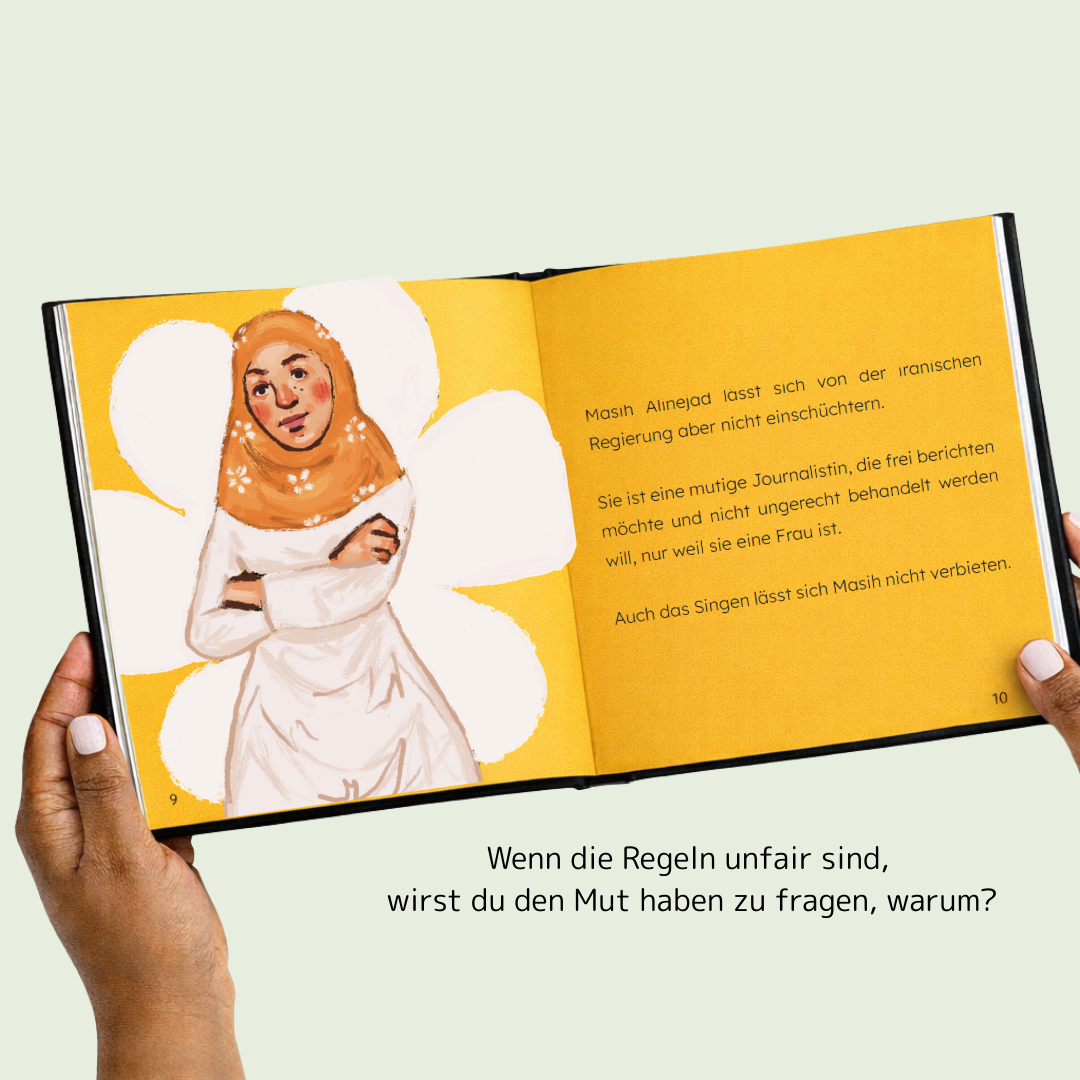 Die wahre Geschichte der mutigen Journalistin Masih Alinejad, die sich trotz Verboten und Drohungen für die Rechte von Frauen und Mädchen im Iran einsetzt.